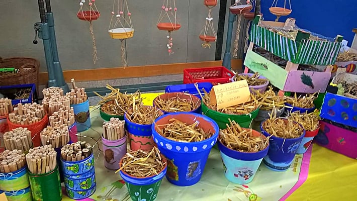 Die Kinder haben während der Projektwoche gebastelt, gesägt, gehämmert, gepflanzt und genäht.