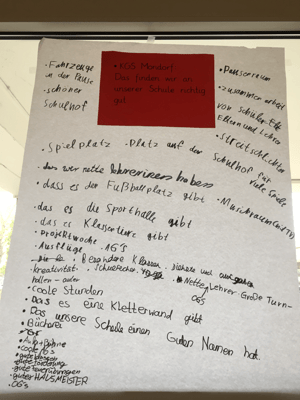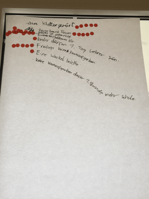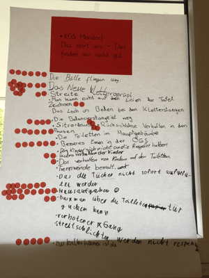 Am Schluss erhielten alle Klassenvertreter rote Klebepunkte, mit denen sie die für sie besonders wichtigen Dinge kennzeichnen sollten.